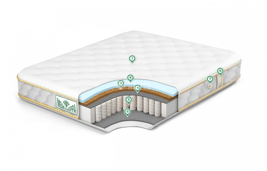 - Кокос 2 см ? Кокос - переплетенные волокна кокосового ореха, растительного происхождения. Исключительные свойства кокоса в прочности, упругости и гигиеничности. Материал придает жесткости матрасу. Обладает отличной вентилируемостью, устойчив к любой влажности и перепадам температуры, гипоаллергенный и долговечный.
