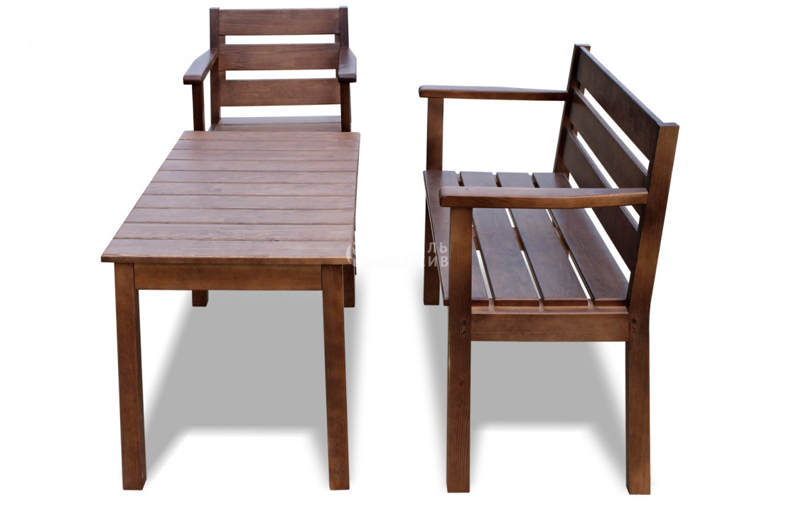 Комплект Дачник из натурального дерева. Модель может быть изготовлена в четырёх вариантах исполнения из древесины на выбор: сосна, берёза, бук или дуб. Широкий выбор вариантов покраски позволяет органично вписаться в любой интерьер. Отличается износостойкостью, надёжностью, лаконичным дизайном. Приобретайте изделие по лучшей цене с доставкой на дом в интернет-магазине «Мебель Массив». Доставка по Кисловодску и Ставропольскому краю .Рейтинг