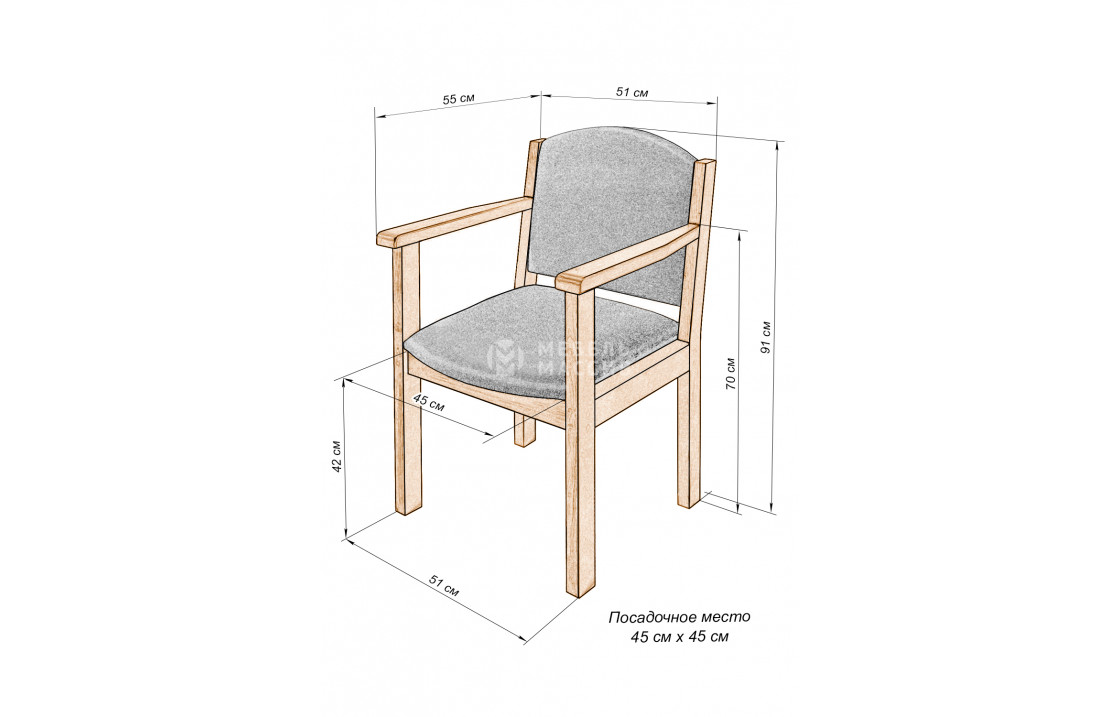 Стул-кресло Дачник из натурального дерева. Товар представлен в четырёх вариантах исполнения из древесины на выбор: сосна, берёза, бук или дуб. Широкий выбор вариантов покраски позволяет органично вписаться в любой интерьер. Отличается износостойкостью, надёжностью, лаконичным дизайном. Приобретайте изделие по специальной цене с доставкой на дом в интернет-магазине «Мебель Массив». Доставка по Кисловодску и Ставропольскому краю .| Размер | Цена | |